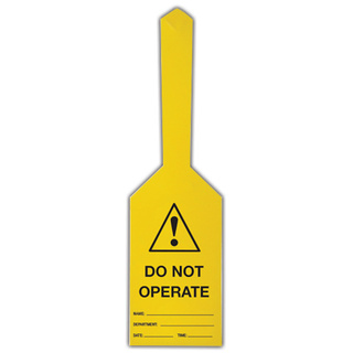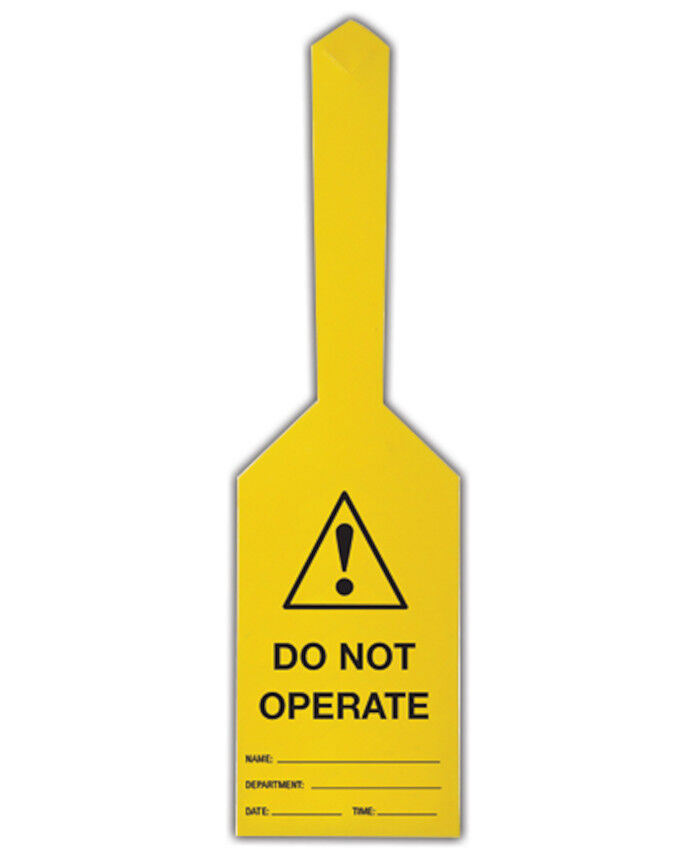 3. 170x80mm - Self Locking Tags - Pkt of 25 - (Caution Triangle & Exclamation Mark) Do Not Operate