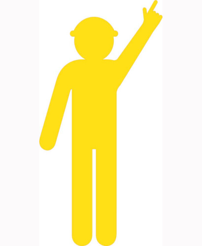1800x900mm - Corflute - Yellow Cut Out Safety Construction Worker [Arm Up - Finger Pointing]