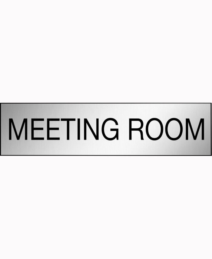 WORKWEAR, SAFETY & CORPORATE CLOTHING SPECIALISTS - 200x50mm - Engraved Label - Black/Brushed Aluminium Traffilite - Adhesive Backed - Meeting Room