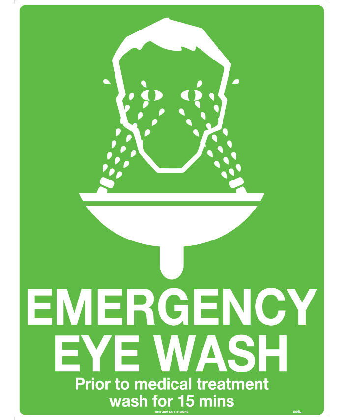WORKWEAR, SAFETY & CORPORATE CLOTHING SPECIALISTS - 225x225mm - Poly - Off Wall - Emergency Eye Wash (with pictogram)