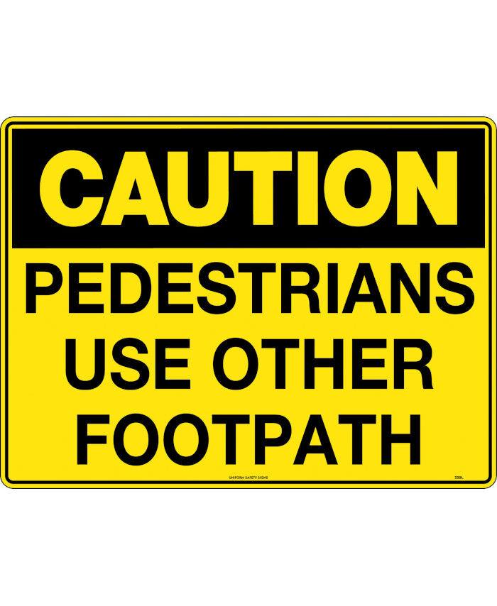 WORKWEAR, SAFETY & CORPORATE CLOTHING SPECIALISTS - 240x180mm - Self Adhesive - Blk/Ylw - Caution Pedestrians Use Other Footpath