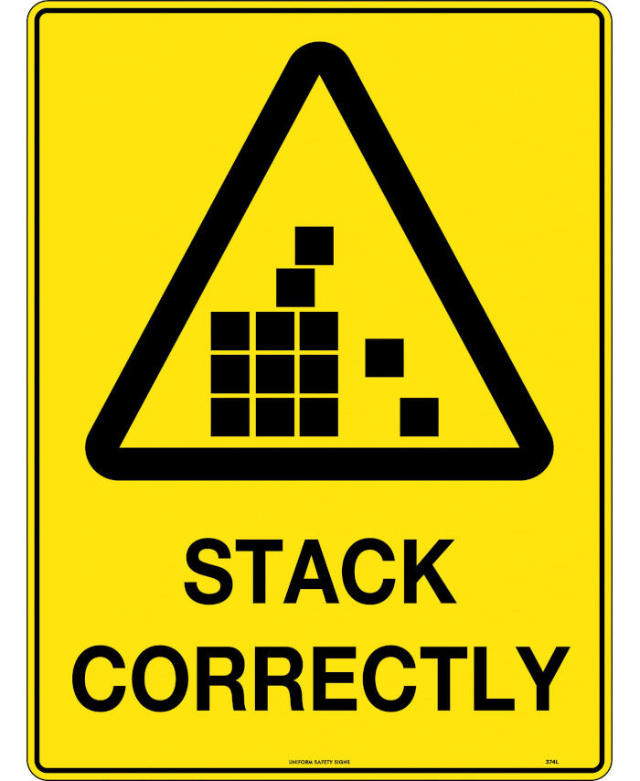 240x180mm - Self Adhesive - Blk/Ylw - Caution Stack Correctly