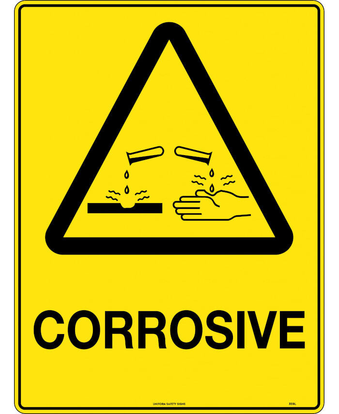 WORKWEAR, SAFETY & CORPORATE CLOTHING SPECIALISTS - 240x180mm - Self Adhesive - Blk/Ylw - Corrosive
