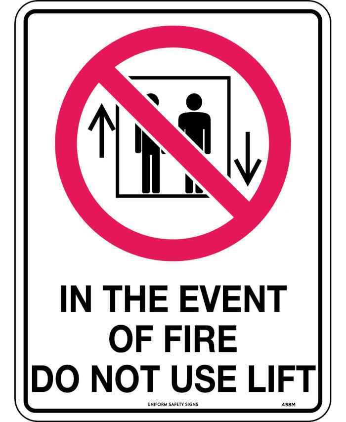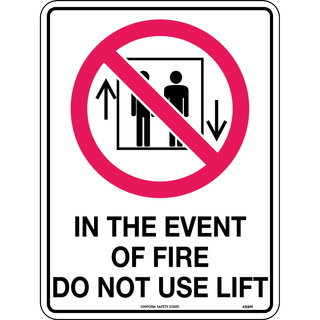 WORKWEAR, SAFETY & CORPORATE CLOTHING SPECIALISTS - 240x180mm - Self Adhesive - In Event of Fire Do Not Use Lift
