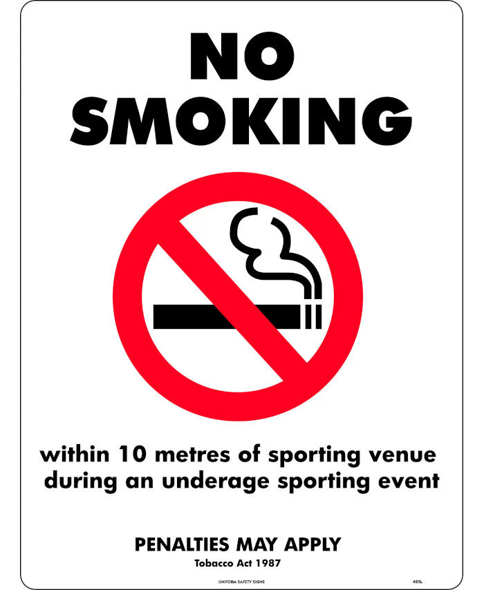 3. 240x180mm - Self Adhesive - No Smoking, Within 10 Metres Of Sporting Venue During an Underage Sporti