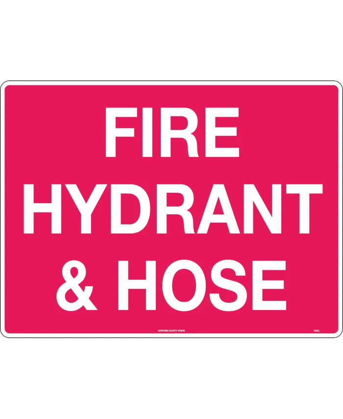 WORKWEAR, SAFETY & CORPORATE CLOTHING SPECIALISTS - 240x180mm - Self Adhesive - Red/Wht - Fire Hydrant and Hose