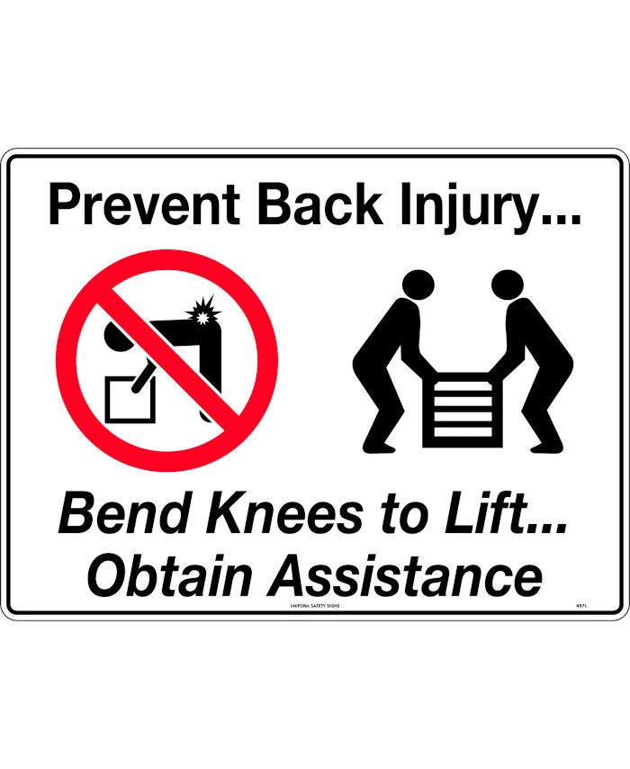 3. 300x225mm - Metal - Prevent Back Injury, Bend Knees to Lift.Obtain Assistance