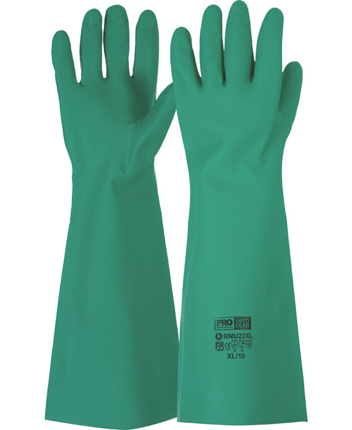 WORKWEAR, SAFETY & CORPORATE CLOTHING SPECIALISTS - 45cm Green Nitrile Gauntlet Gloves