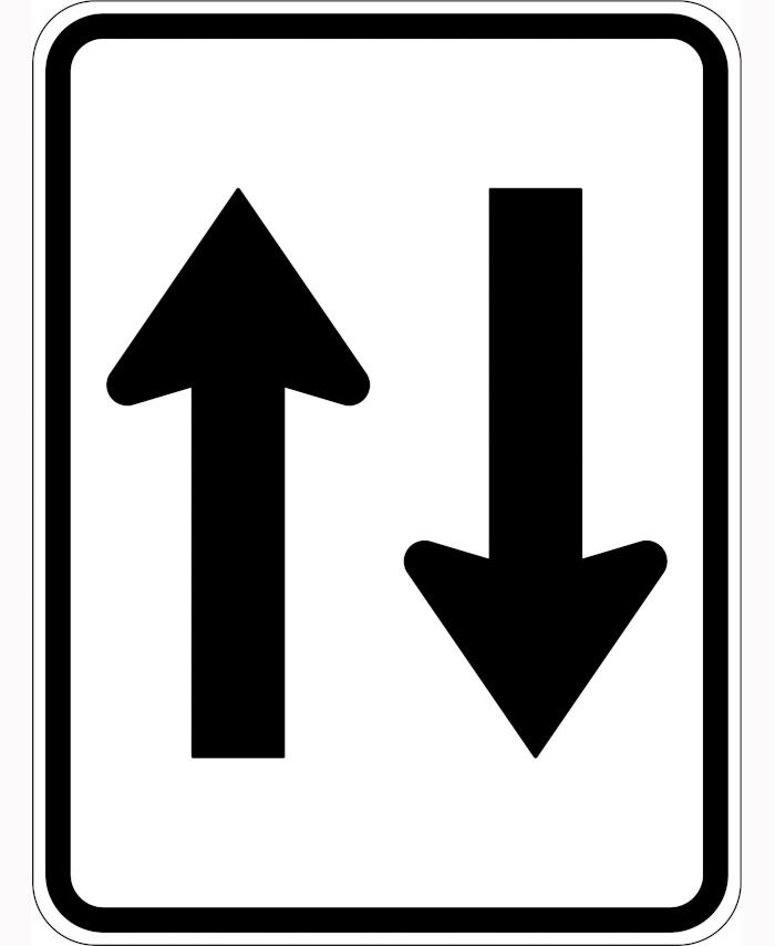 800x600mm - Aluminium, Class 1 - Two Way Traffic (Symbolised with arrows)