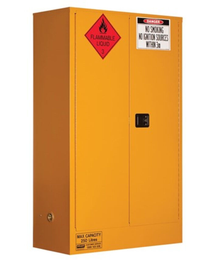 WORKWEAR, SAFETY & CORPORATE CLOTHING SPECIALISTS - FLAMMABLE LIQUID STORAGE CABINET: 250L - 2 DOORS - 3 SHELVES