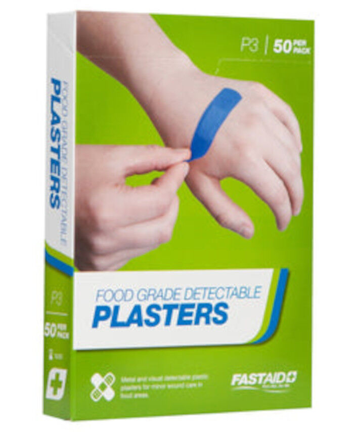 3. FOOD GRADE PLASTERS, METAL AND VISUAL DETECTABLE, PLASTIC, 72 X 19MM, 50PK
