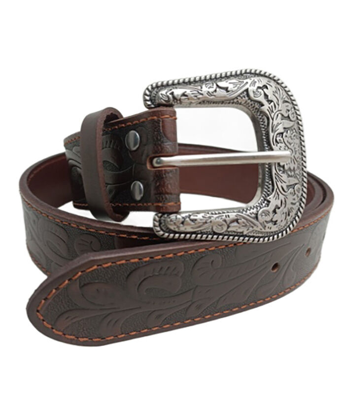 WORKWEAR, SAFETY & CORPORATE CLOTHING SPECIALISTS - Pilbara Western Children's Dress Buckle Tooled Leather Belt