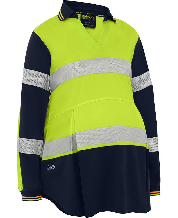 WORKWEAR, SAFETY & CORPORATE CLOTHING SPECIALISTS - Women's Taped Hi Vis Recycled V-Neck Maternity Polo