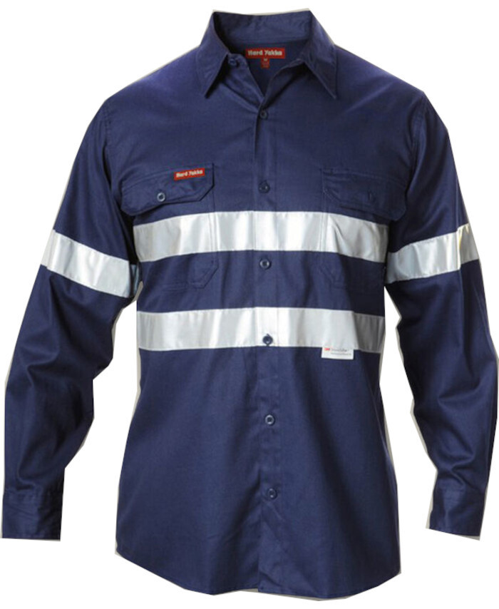 WORKWEAR, SAFETY & CORPORATE CLOTHING SPECIALISTS - Foundations - Hi-Visibility Cotton Drill Shirt with 3M Tape Long Sleeve